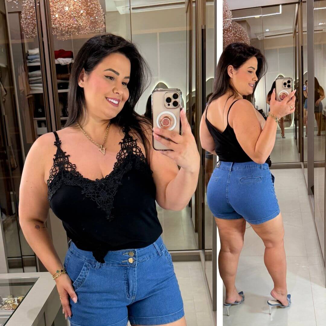 * A modelo está usando tamanho G/GG da peça *