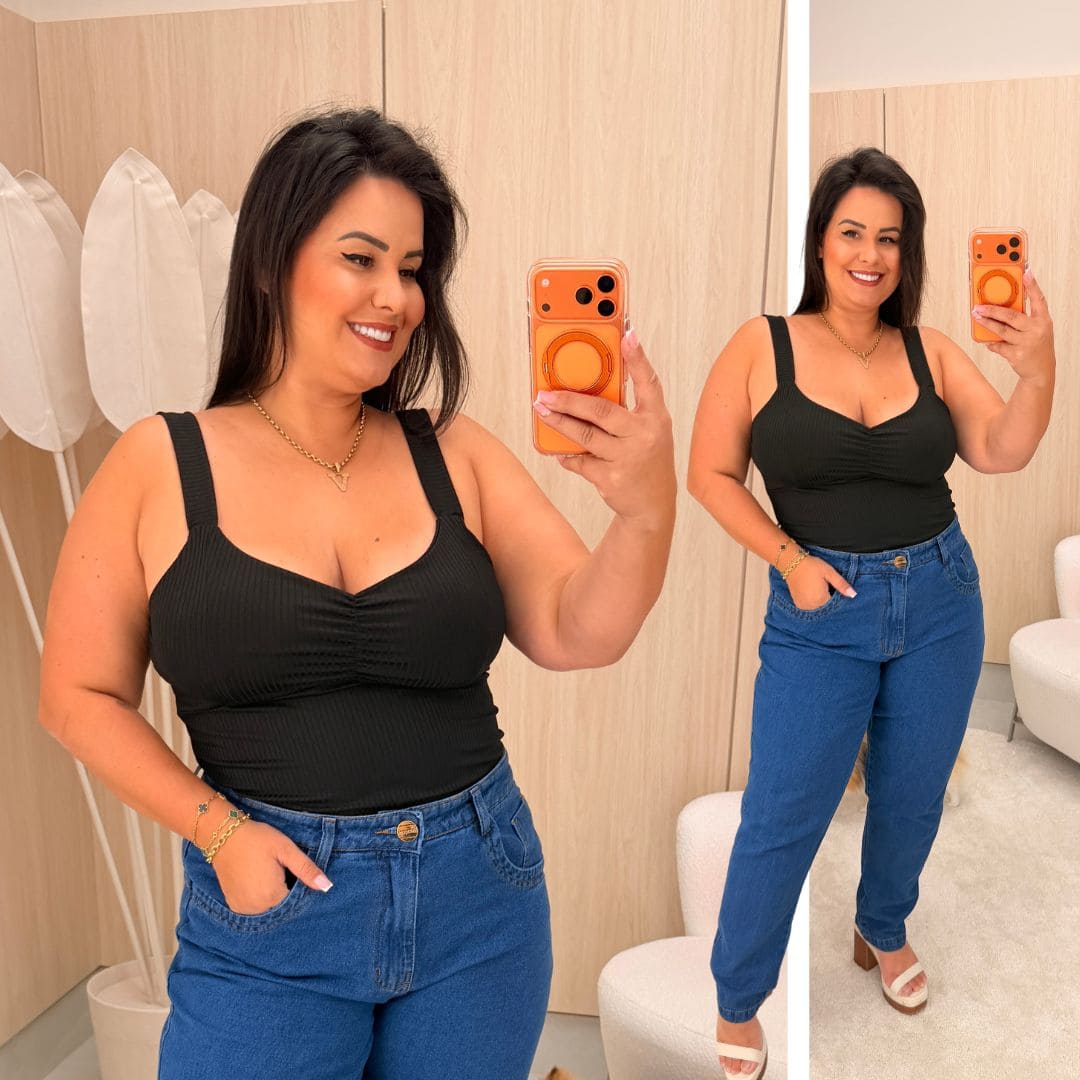 Alcinha Canelada Preta Plus Size