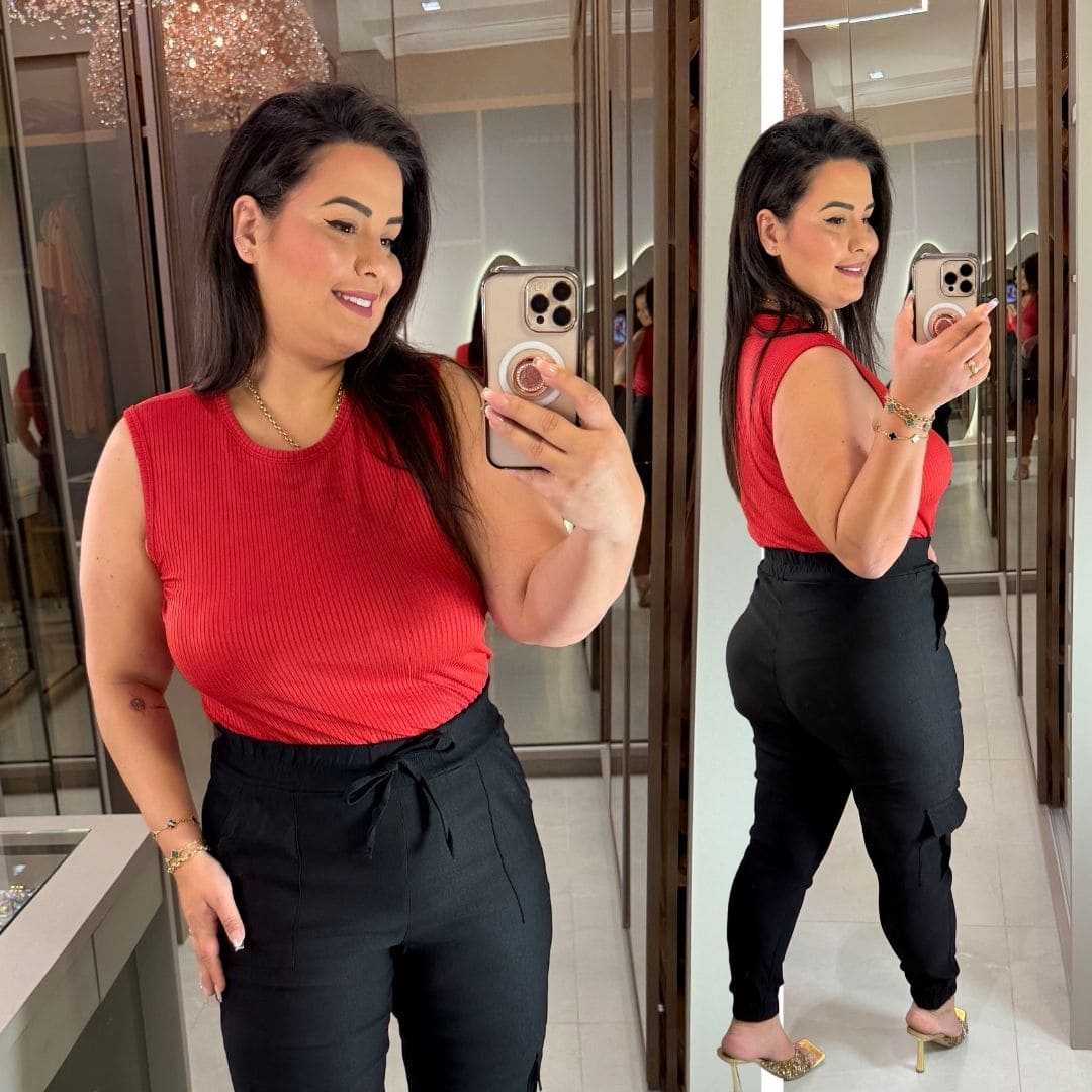 Blusa Canelada Juliete Vermelho Plus Size