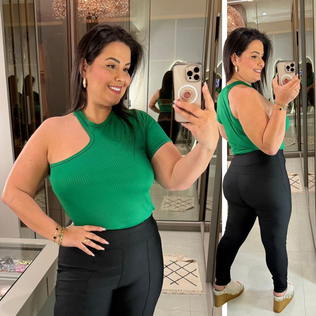 Blusa Canelada Nula Verde Bandeira Plus Size