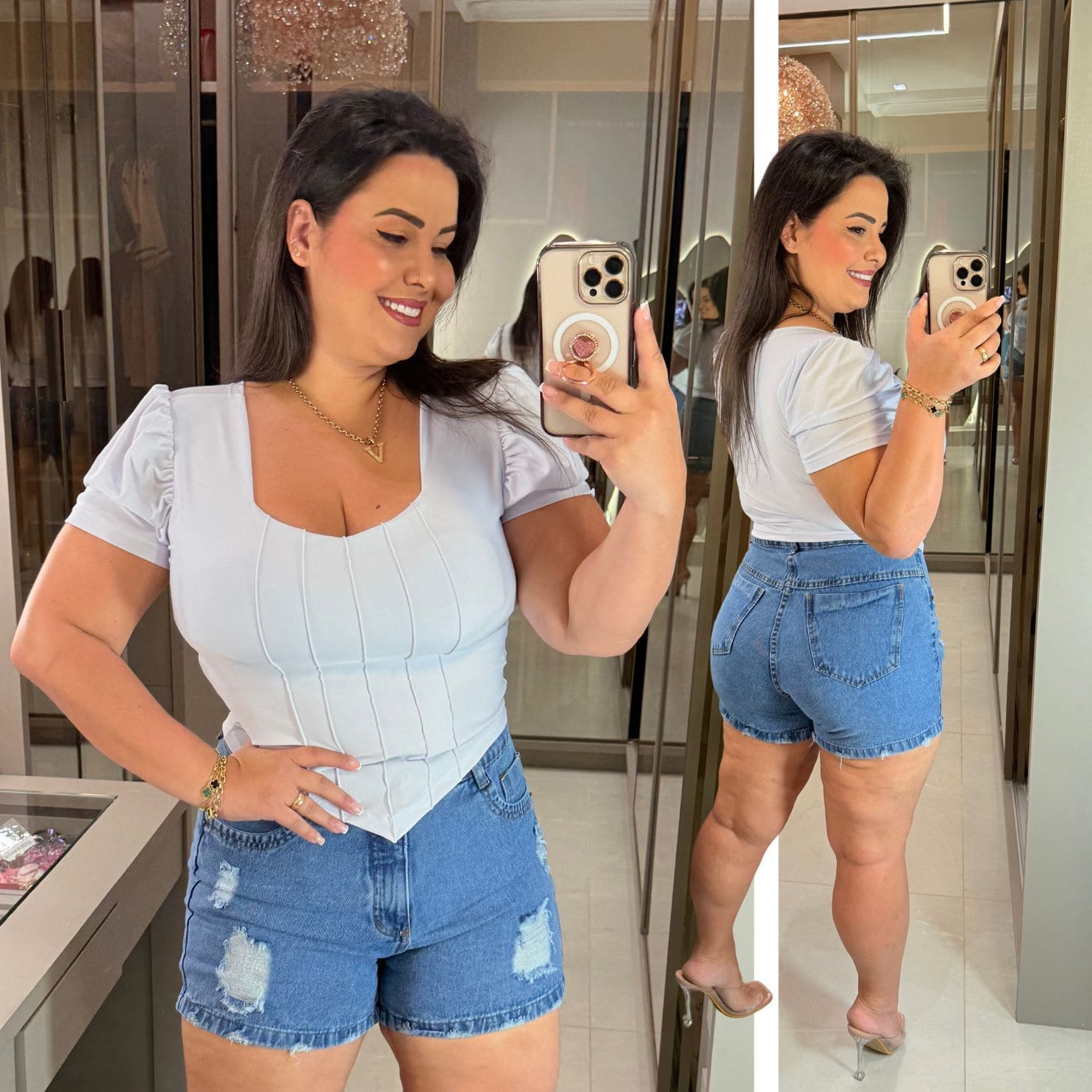 - Decote: Quadrado, moderno e elegante e fácil de combinar
