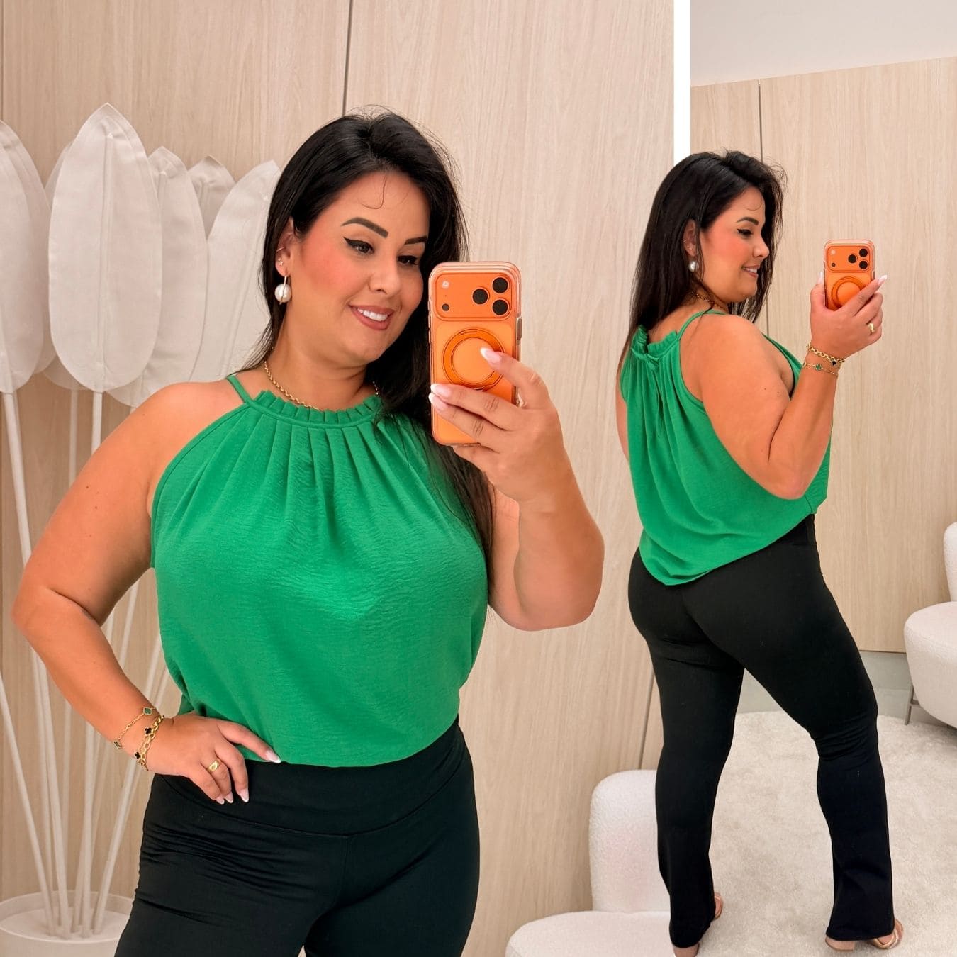 * A modelo está usando tamanho único da peça *