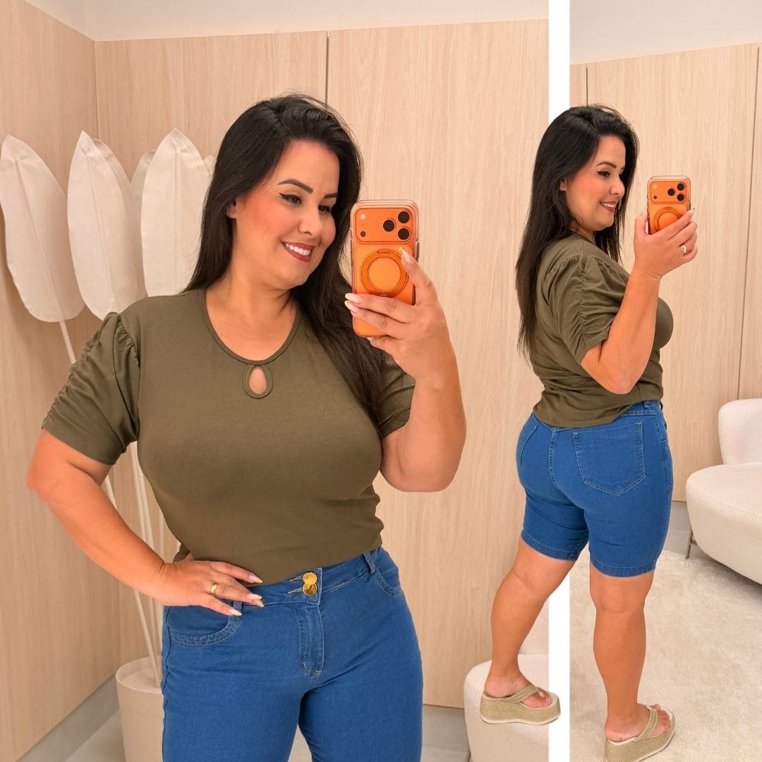 Blusa Gotinha Manga Diana Verde Plus Size