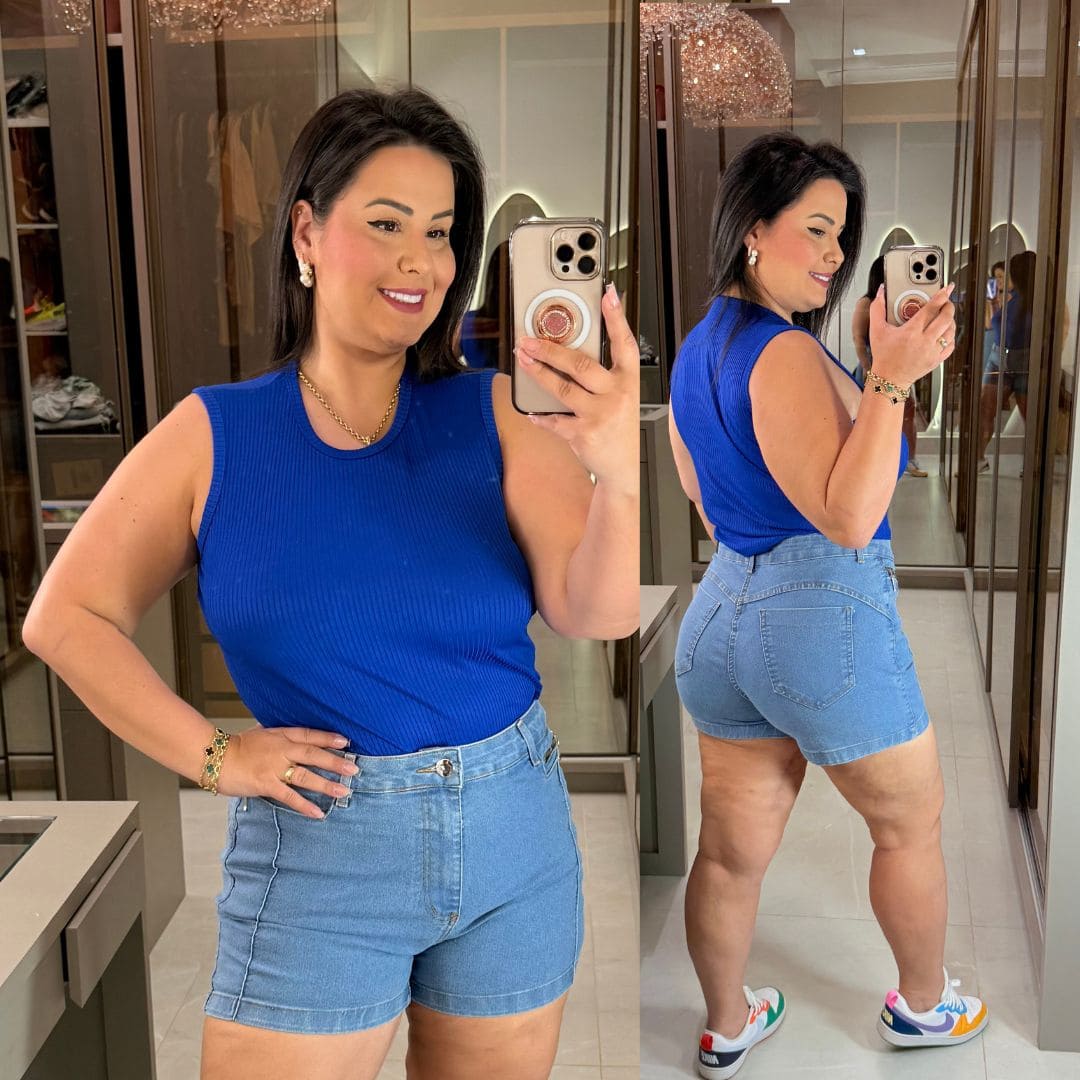 Blusa Canelada Juliete Azul Royal Plus Size