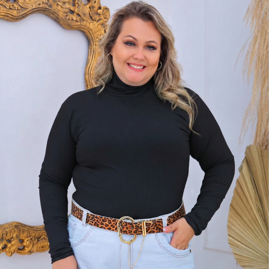 Blusa Manga Olivia Gola Alta Preta Plus Size