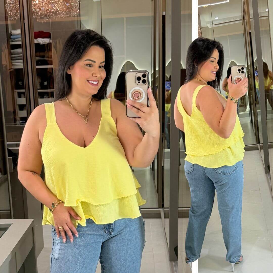 - Modelagem: Caimento leve, proporcionando conforto e elegância