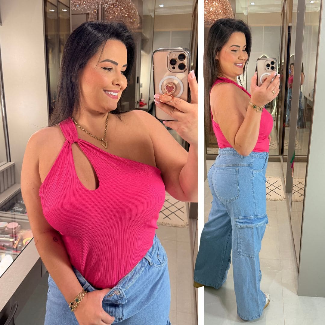 - Tecido Canelado: Elastano na composição, conforto e estilo com uma textura que realça seu corpo