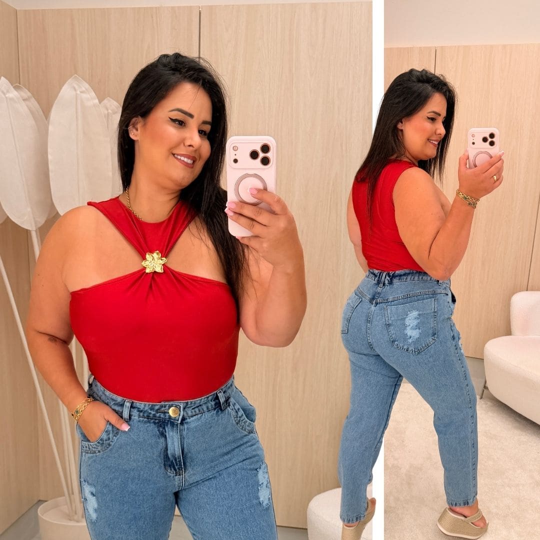Body Gola Flor Mia Vermelho Plus Size