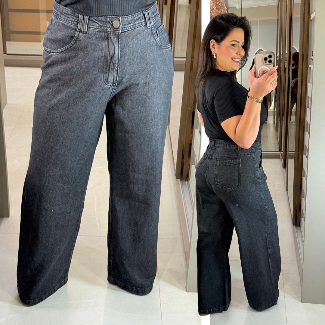 Calça Jeans FF Mônica Wide Leg Plus Size