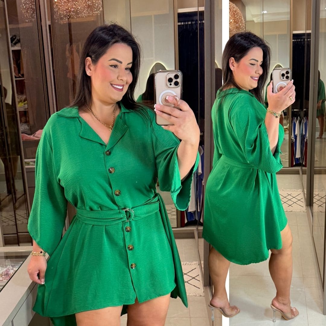 Chemise Mullet 3/4 Tainara Verde Bandeira Plus Size