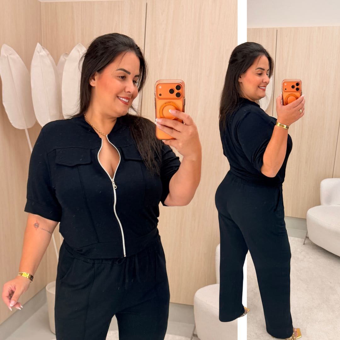 Conjunto Alice Moletinho Ziper Preto Plus Size