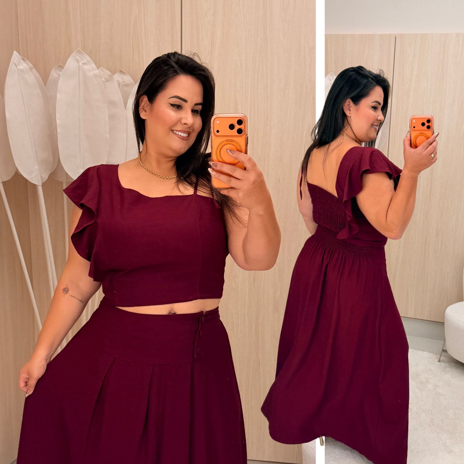 Conjunto Bruna Babado Vinho Plus Size