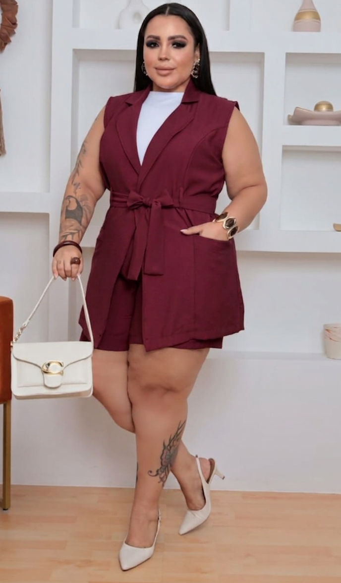 Conjunto Colete Karina Vinho Plus Size