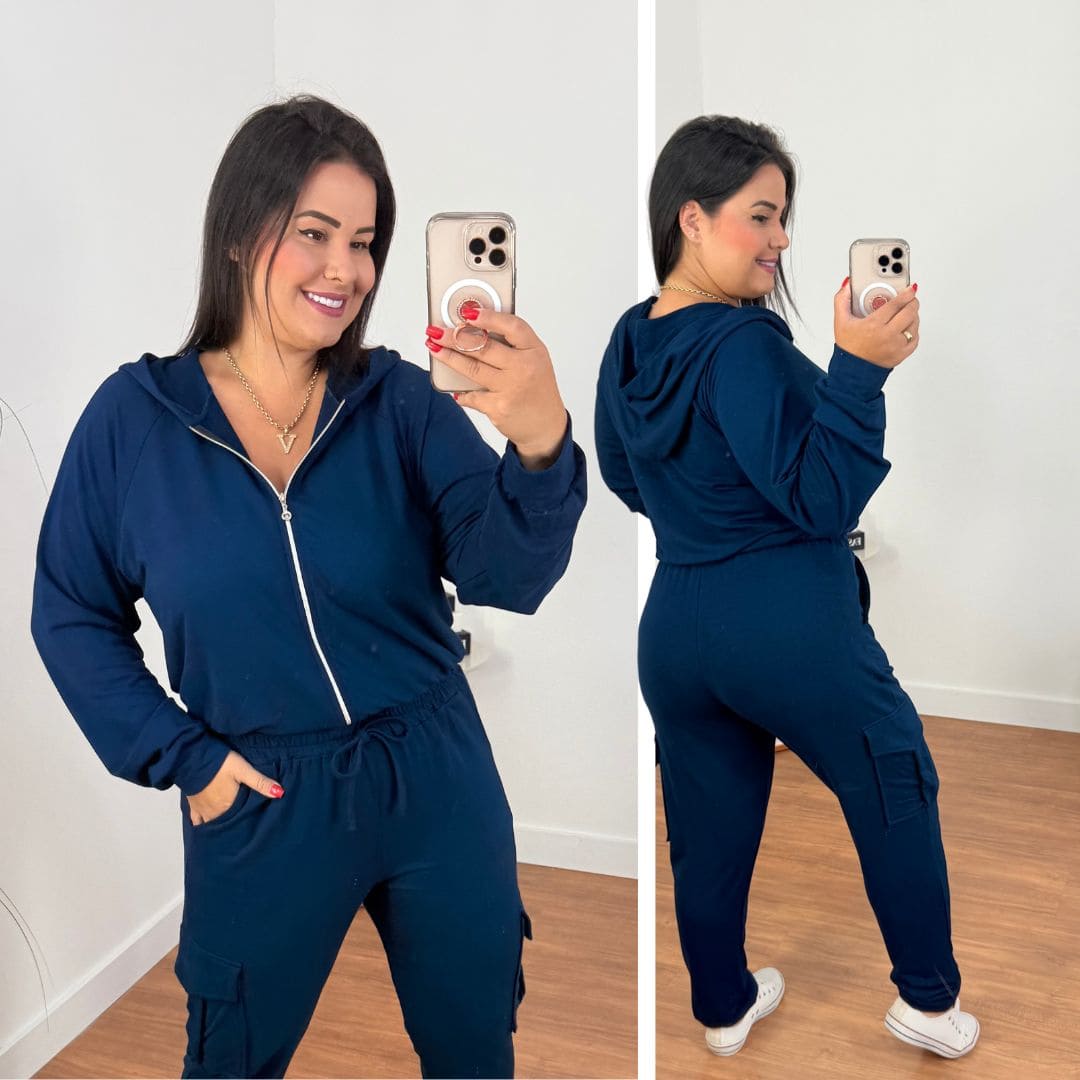 Conjunto Moletinho Cargo Zíper Azul Marinho Plus Size