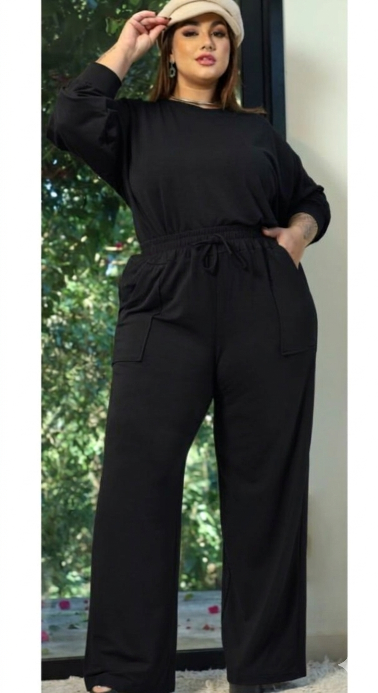 Conjunto Moletinho Grazi Preto Plus Size