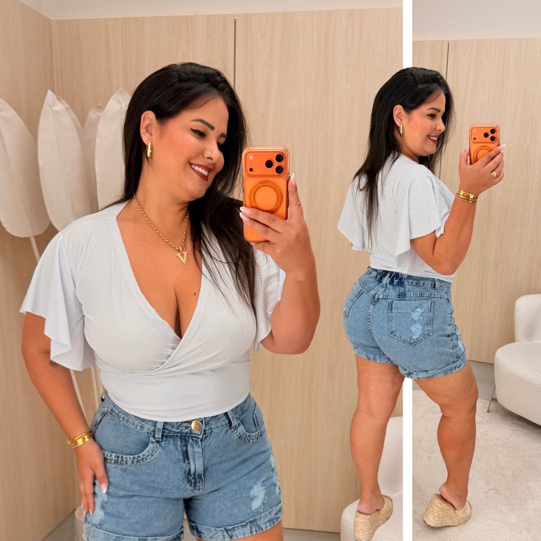 - Decote Transpassado: Valoriza o colo de forma sofisticada e feminina