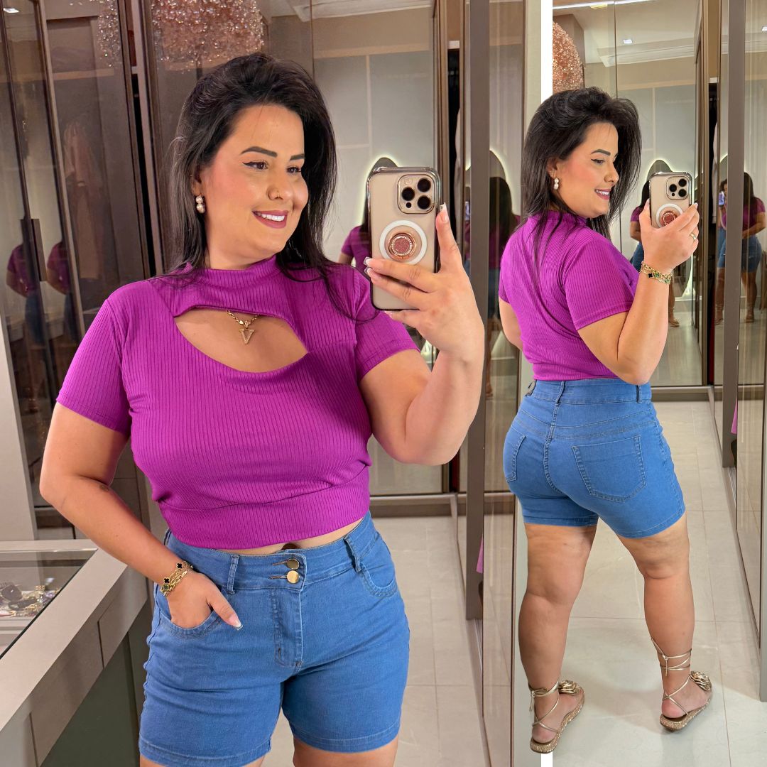 - Decote: Diferenciado com recorte frontal vazado, moderno e estiloso