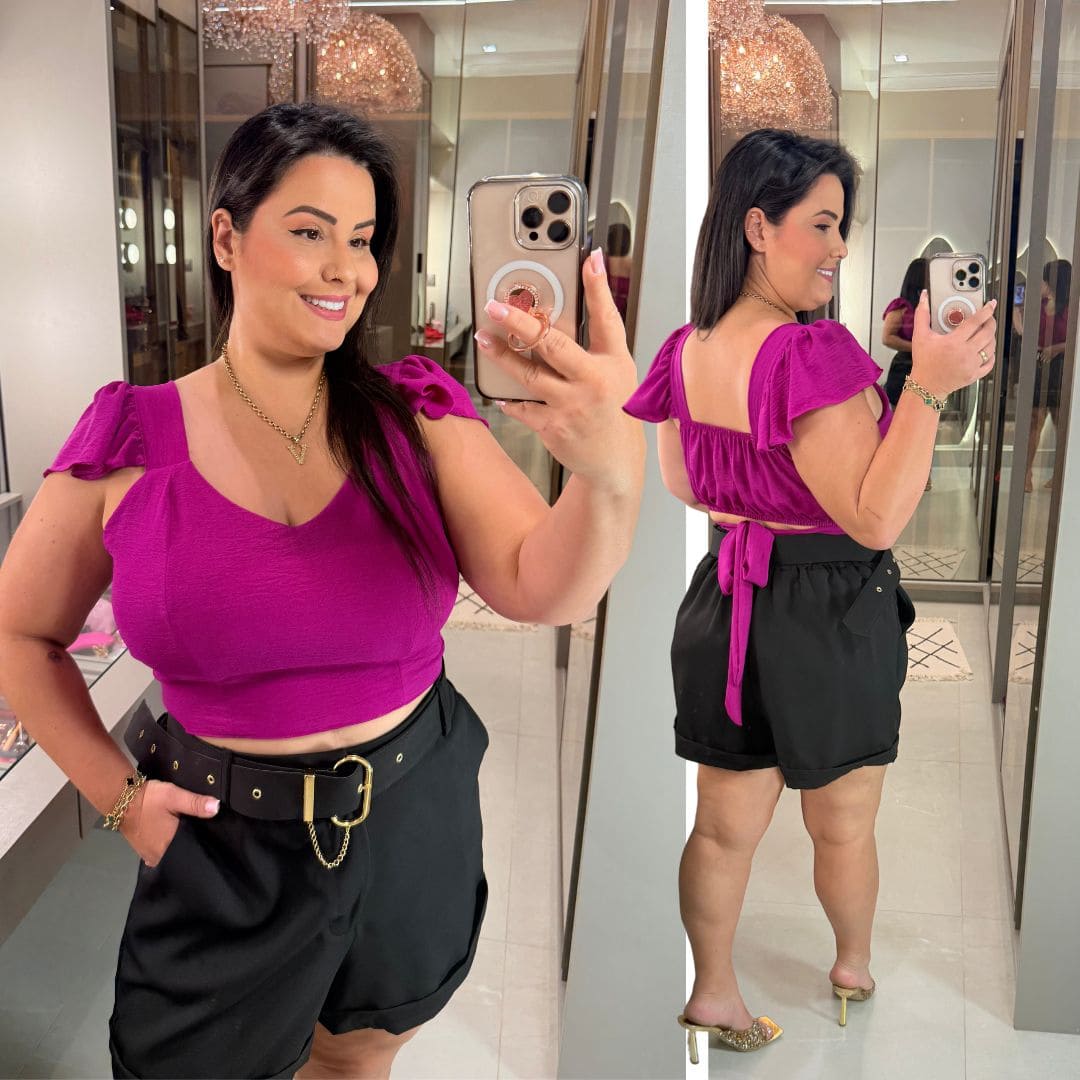 - Mangas: Curtas, modelo em babados, trazendo feminilidade e charme