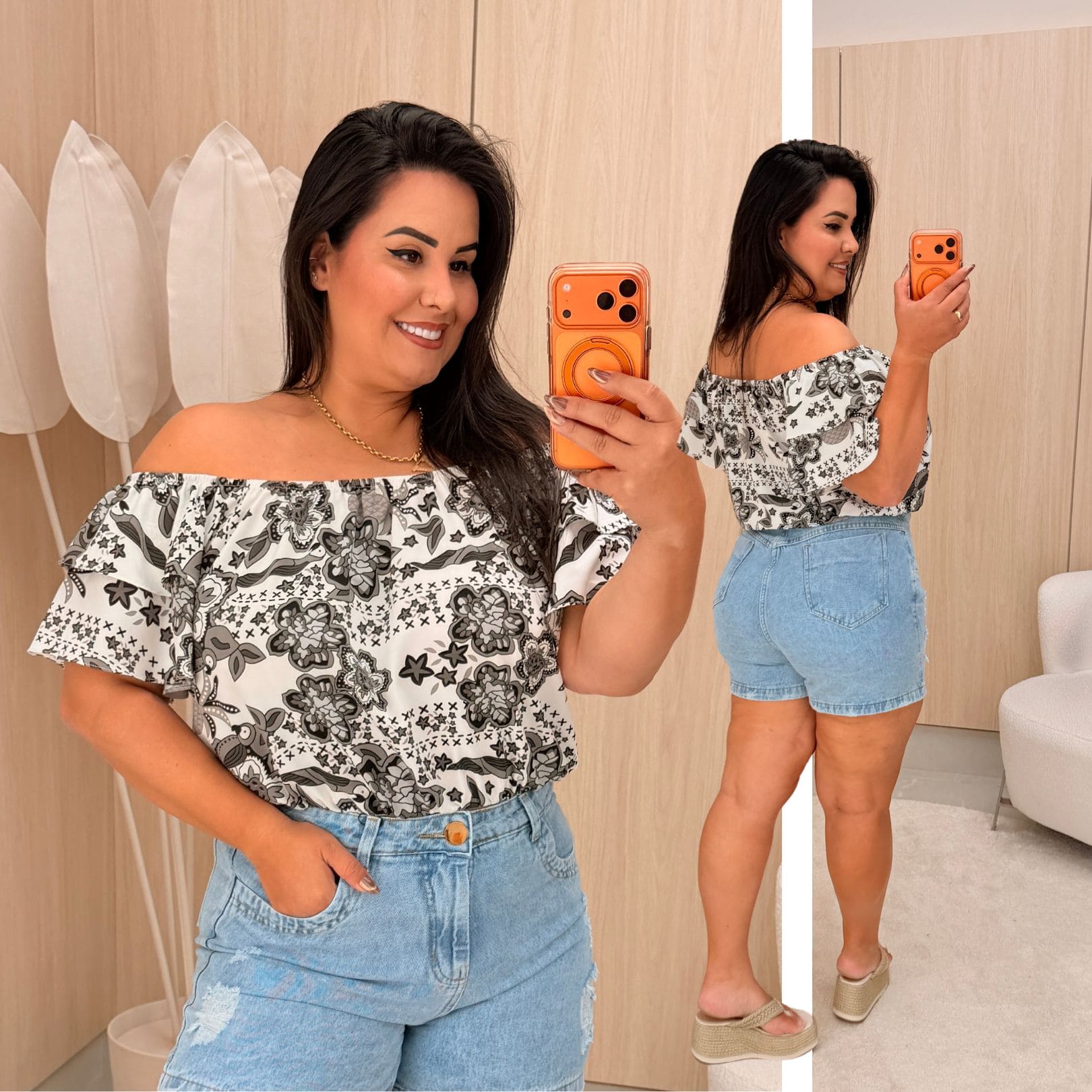 Cropped Ciganinha Vip Estampado Preto e Branco Plus Size