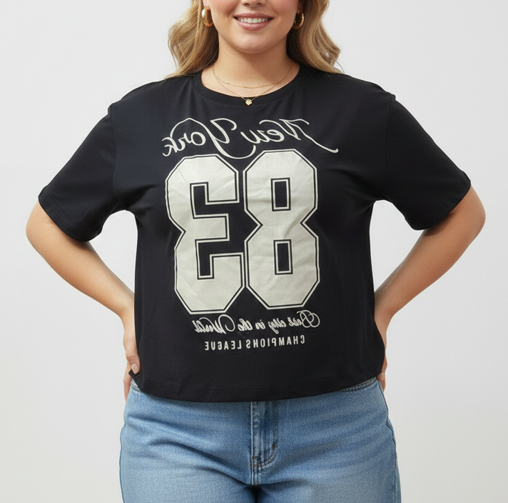 Cropped Manga New York Preta Plus Size
