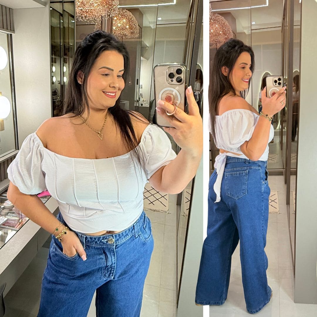 Cropped Manga Vip Branco Plus Size