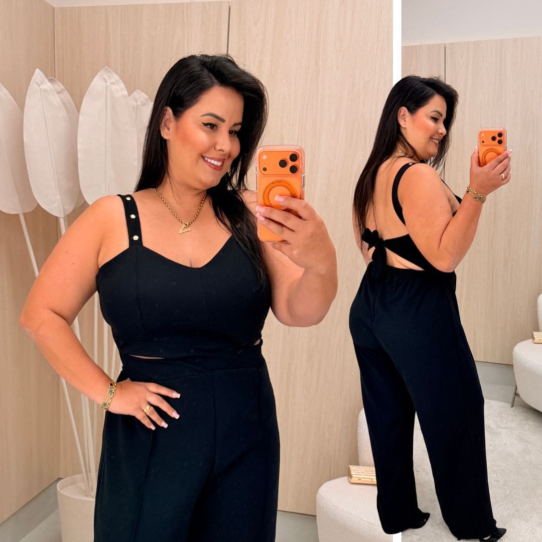 - Tecido Crepe Liverpol: Com elasticidade, toque levemente texturizado mantendo a modelagem