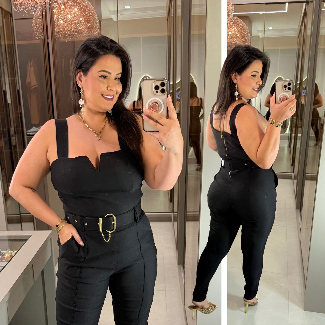Macacão Vip Bengaline Aro V Preto Plus Size