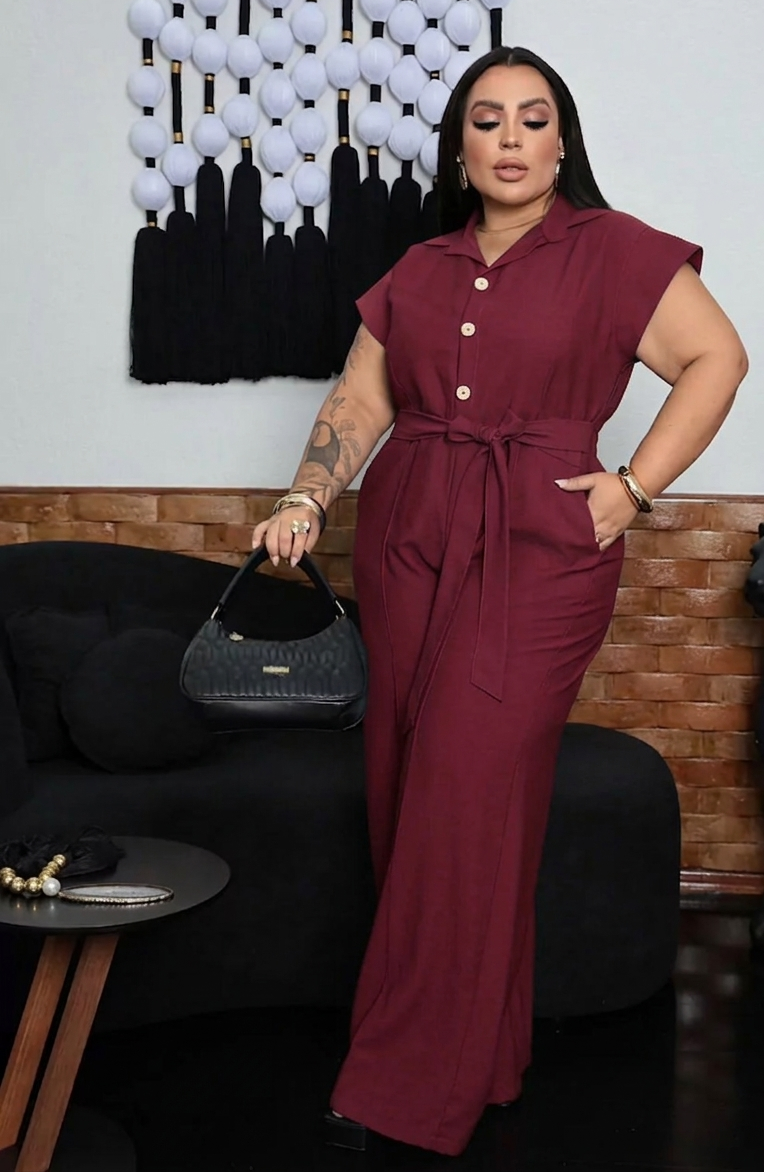Macacão Esmeralda Botão Simone Vinho Pus Size