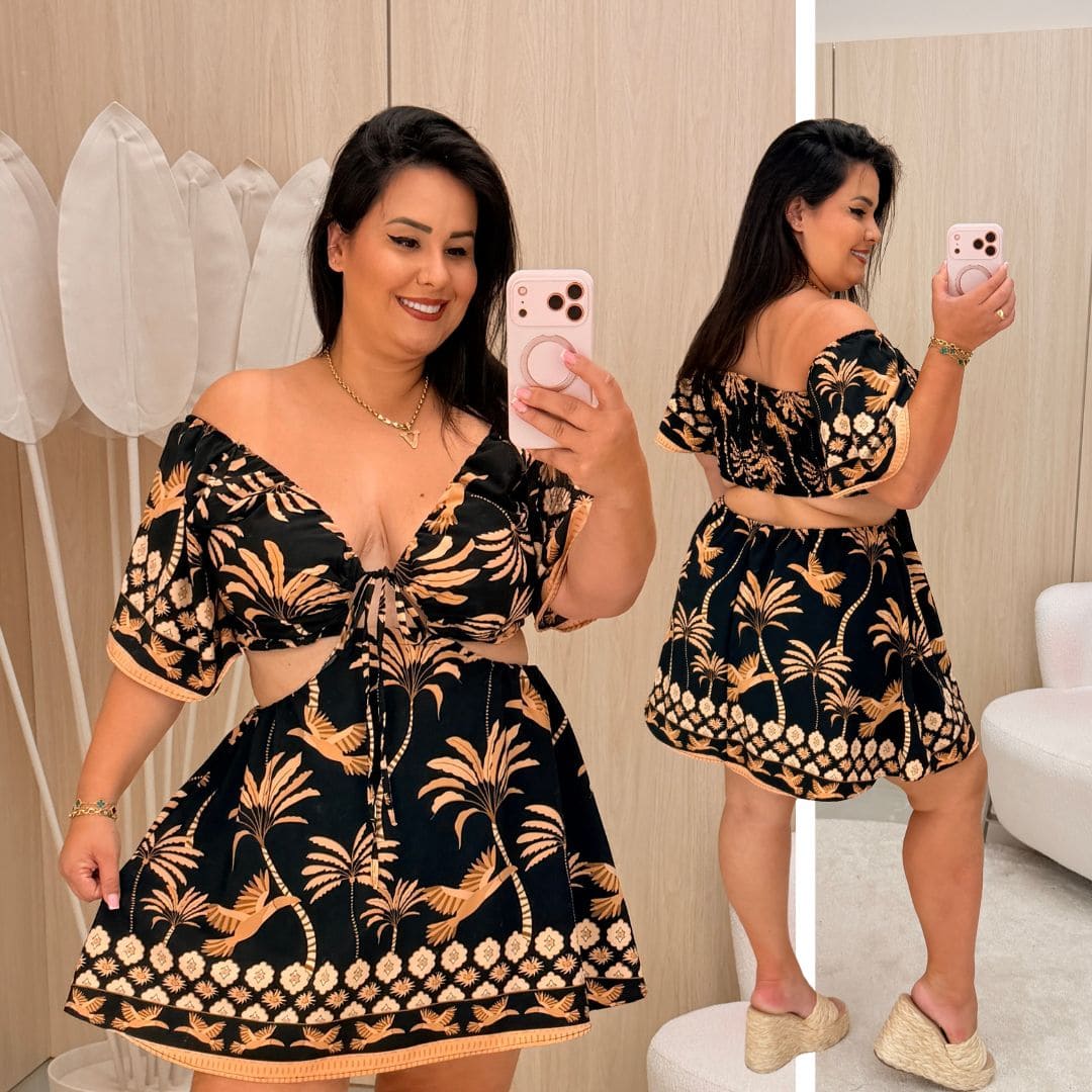 - Detalhe frontal: Amarração no busto com recorte na cintura, trazendo charme e sensualidade