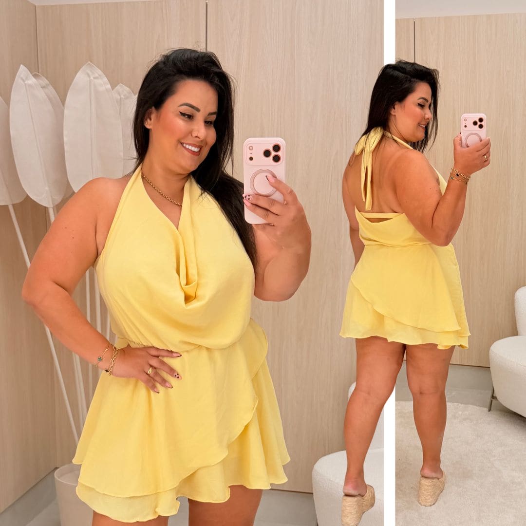 Macaquinho Gola Boba Lívia Amarelo Plus Size