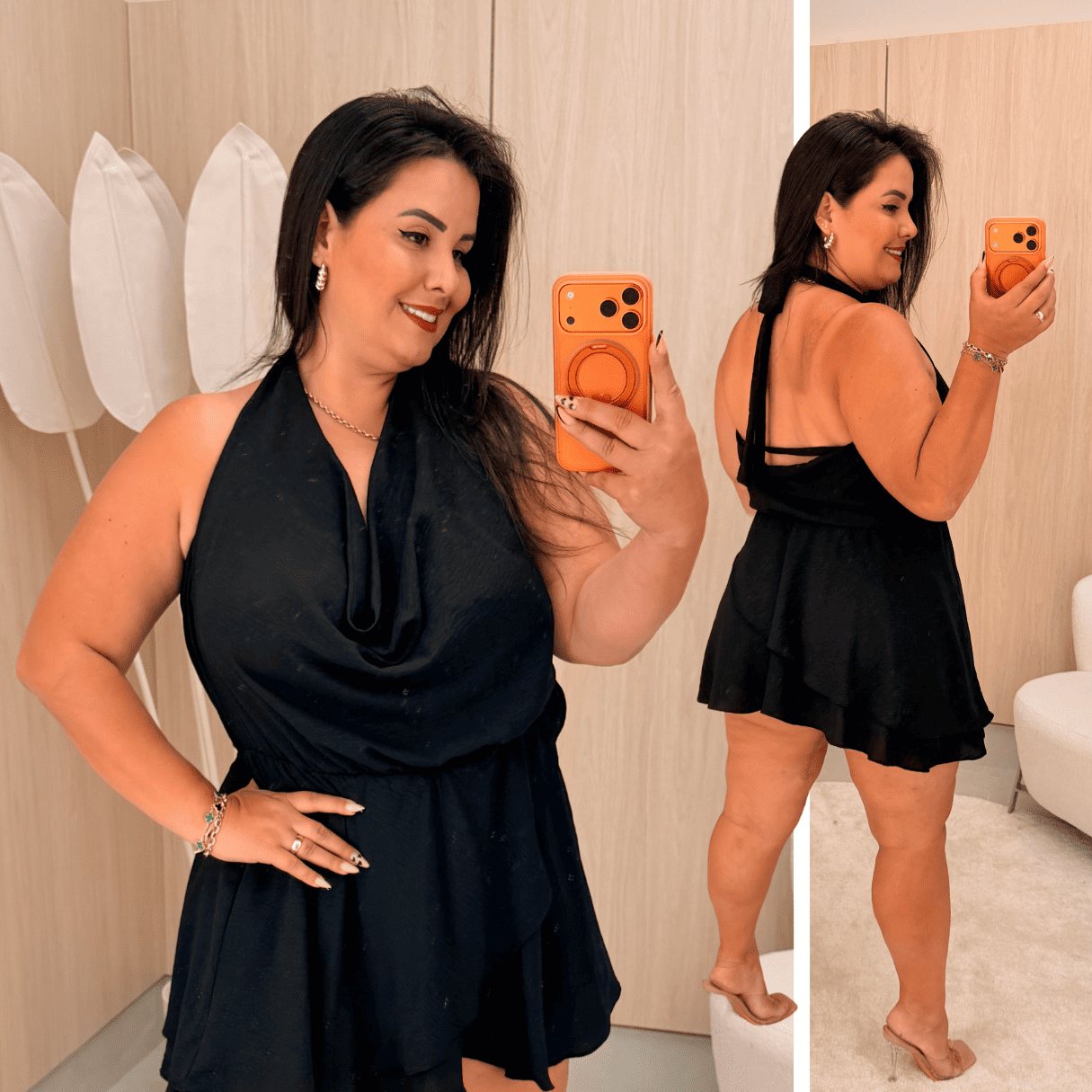 Macaquinho Gola Boba Lívia Preto Plus Size