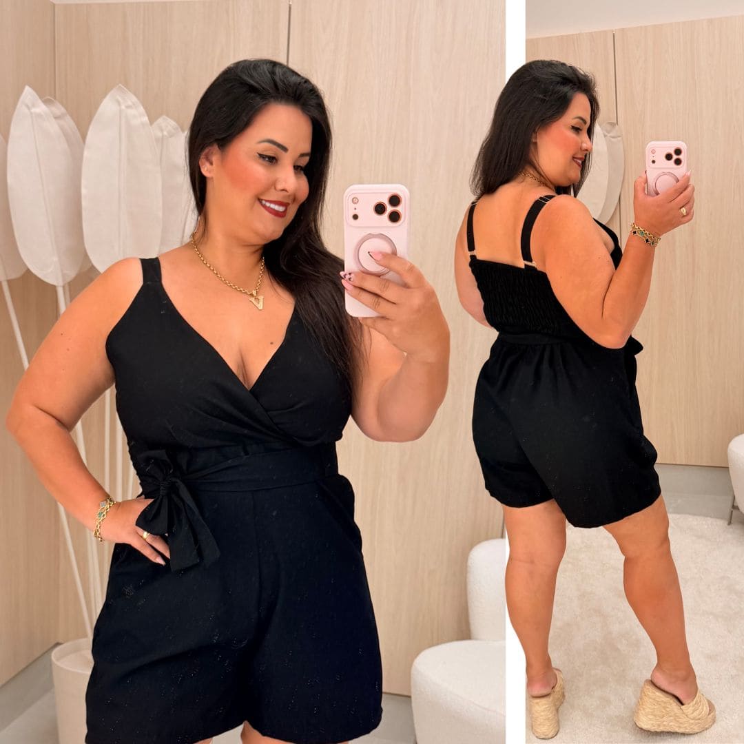 - Decote: Transpassado (estilo envelope), valorizando o colo e criando um visual delicado