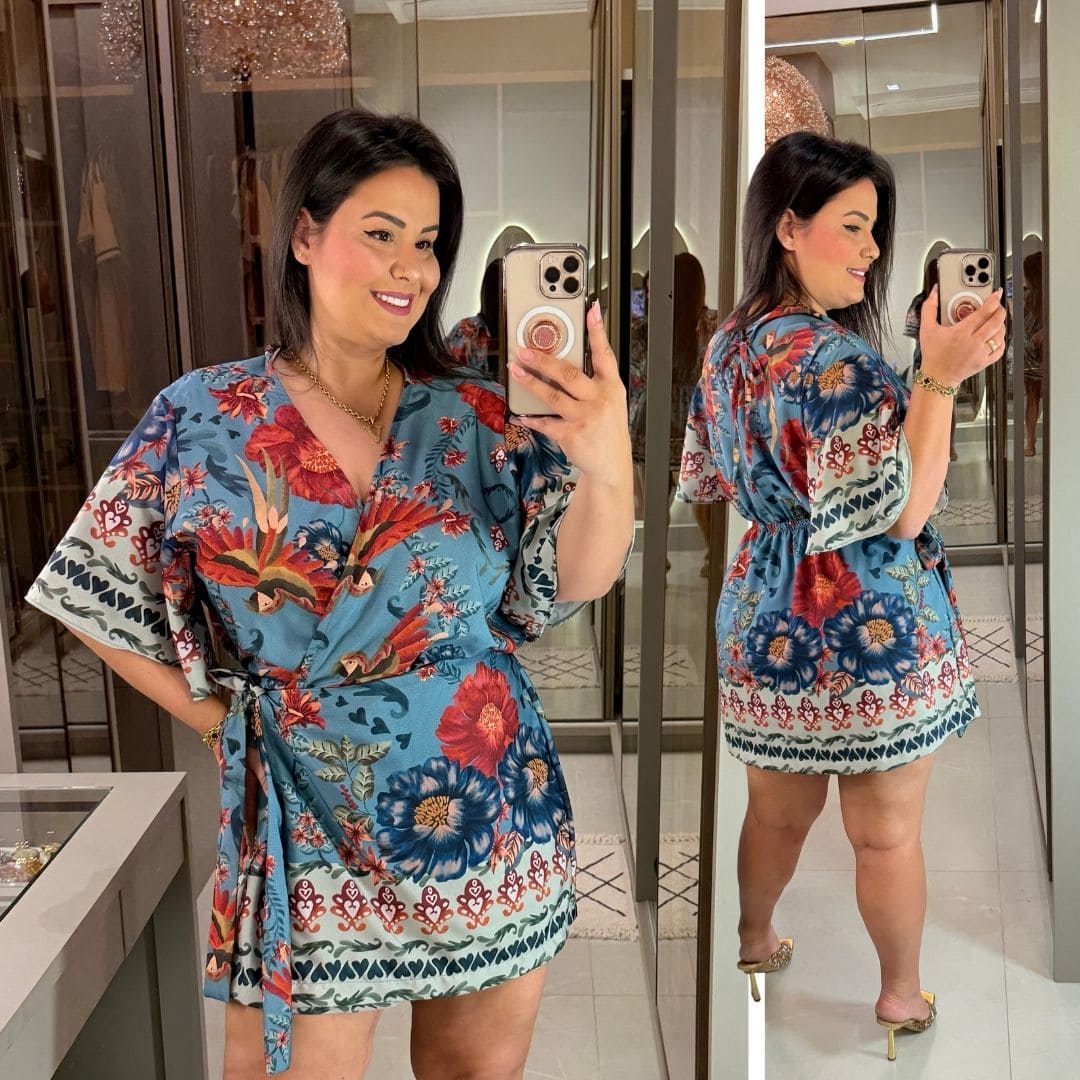 - Mangas: Curtas e amplas, estilo flare, proporcionando movimento
