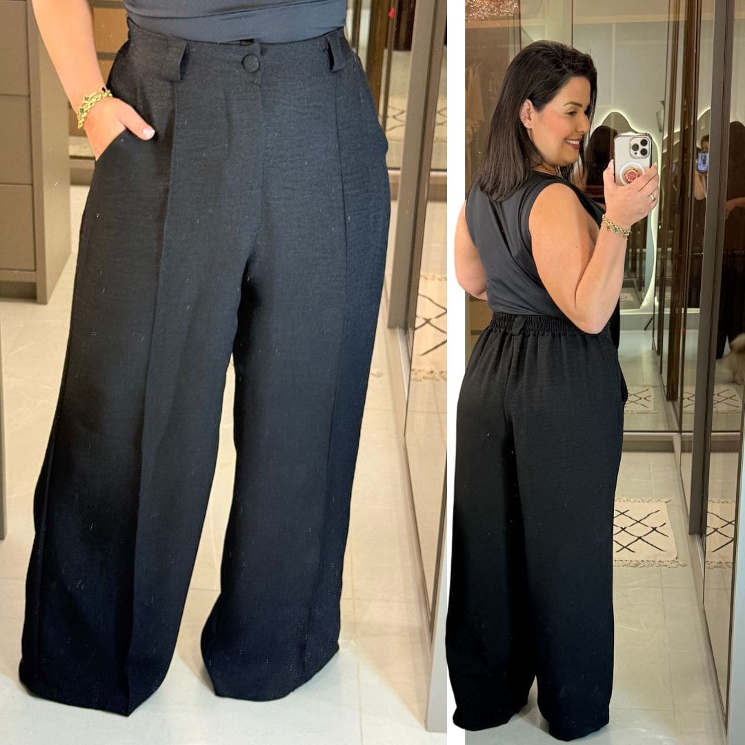Calça Pantalona Linhão Jussara Preto Plus Size
