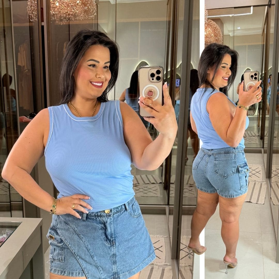 Cropped Ribana Tatiana Azul BB Plus Size
