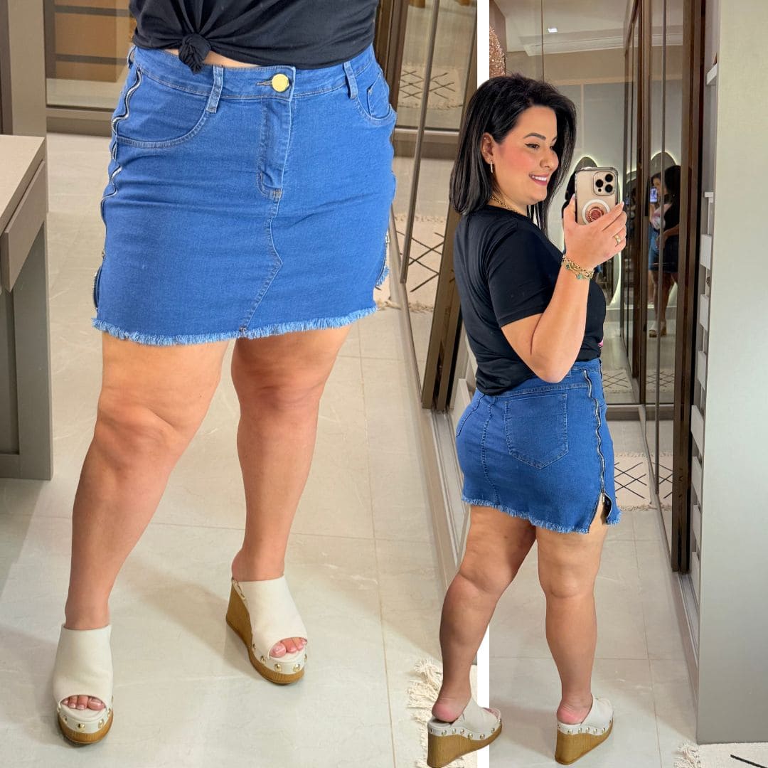 Saia Jeans Awa Rafaela Zíper Plus Size