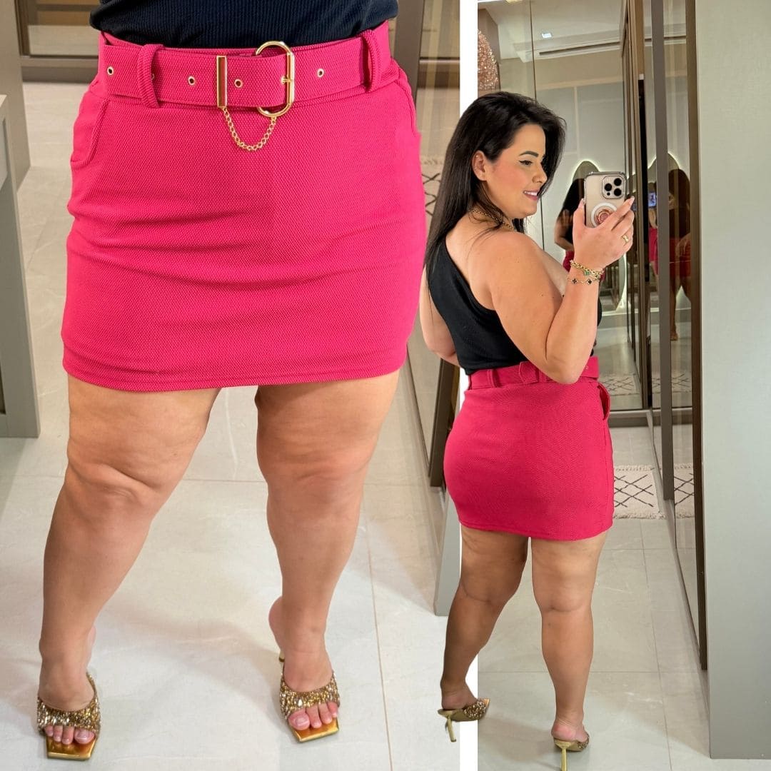 Short Saia Talita Malha Pop Pink Plus Size