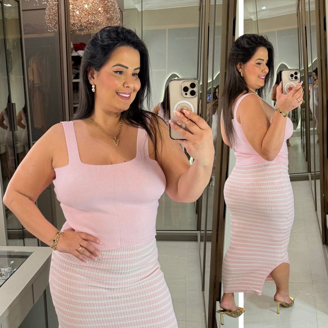 Top Alça Modal Poá Rosa BB Plus Size
