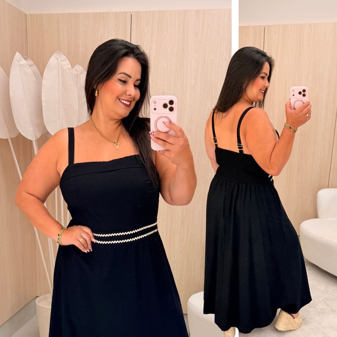 - Cintura: Marcada detalhe vazado em tiras trançadas criando um charme delicado