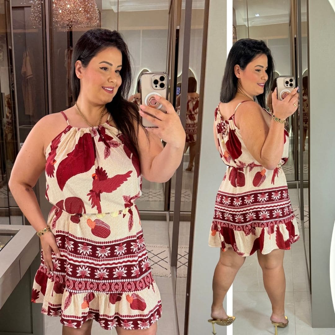 Vestido Alça Gisele Estampado Marsala Plus Size