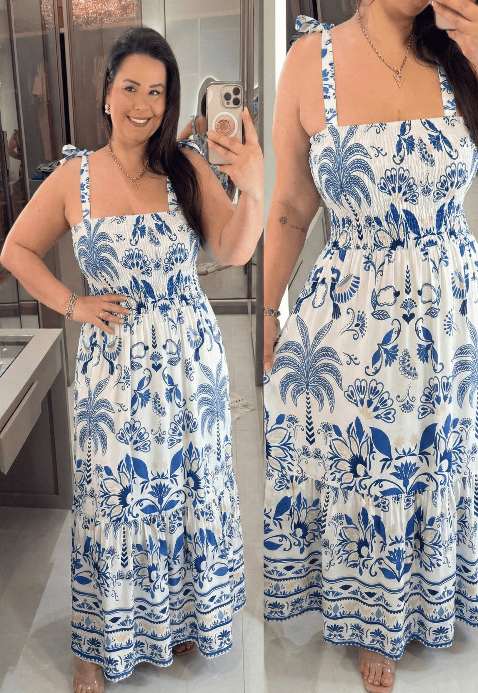 Vestido Alça Pâmela Mg Floral Azul Plus Size