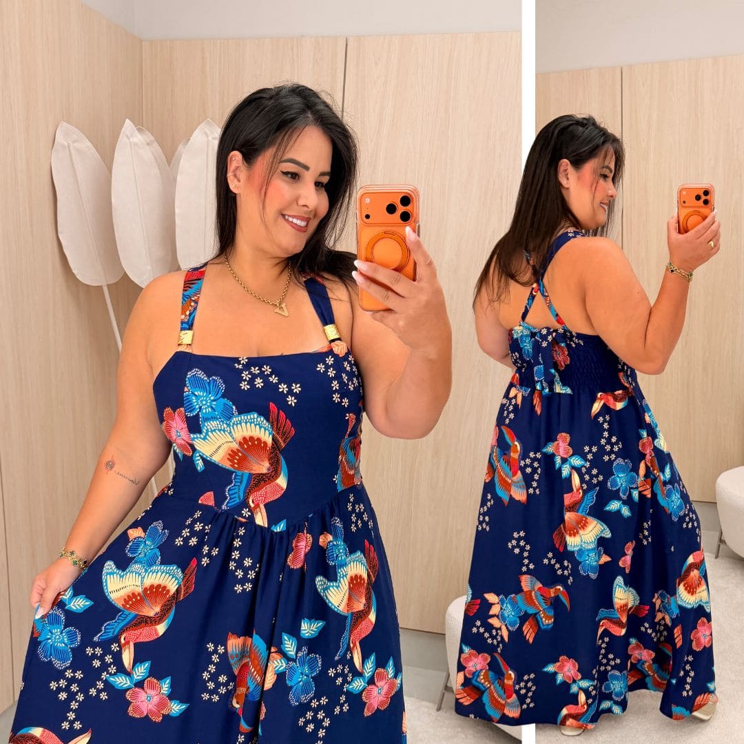 Vestido Celeste Azul Marinho Verão Plus Size