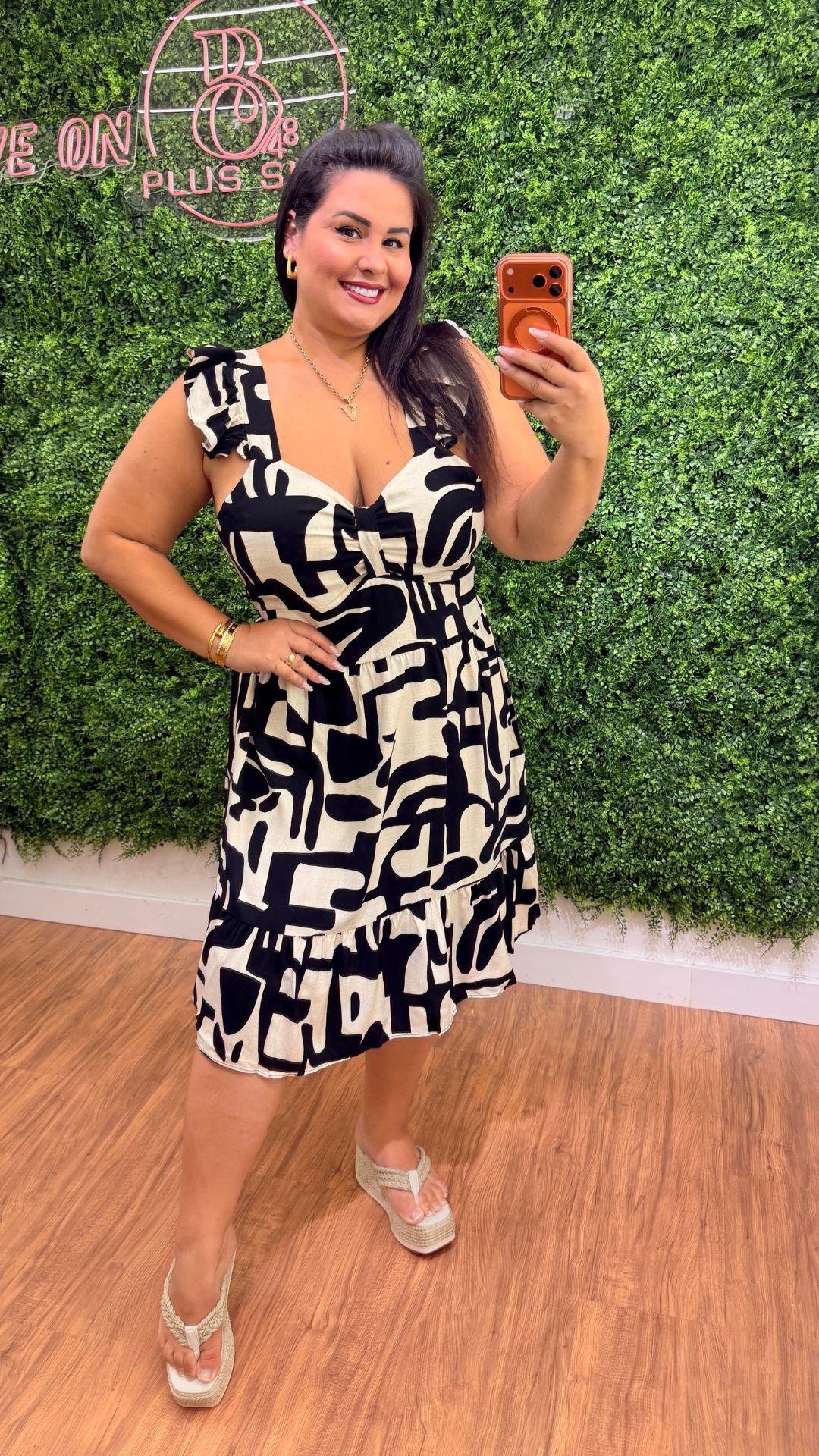 Vestido Curto Mali Estampado Preto e Branco Plus Size
