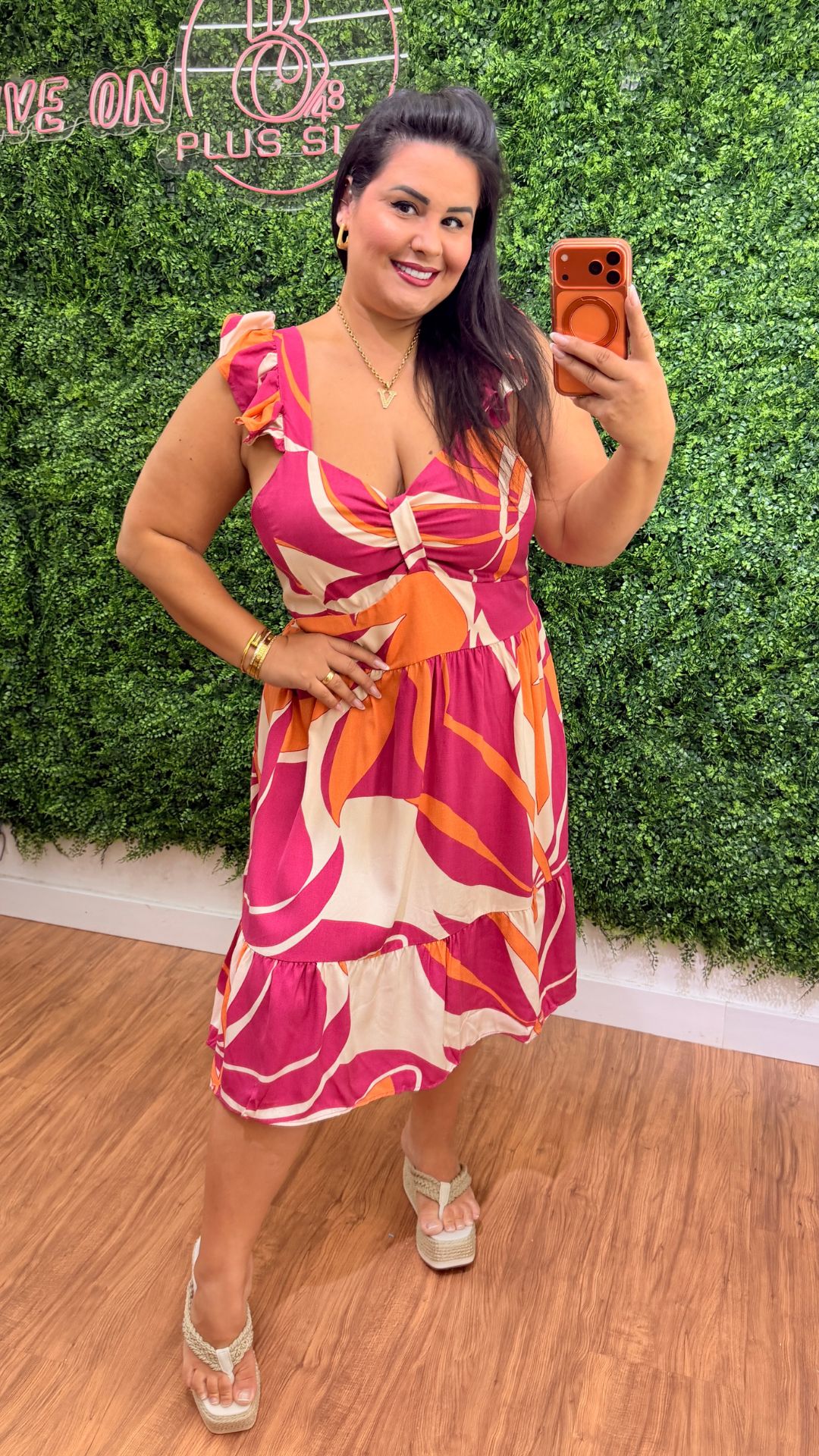 Vestido Curto Mali Rosa e Laranja Plus Size
