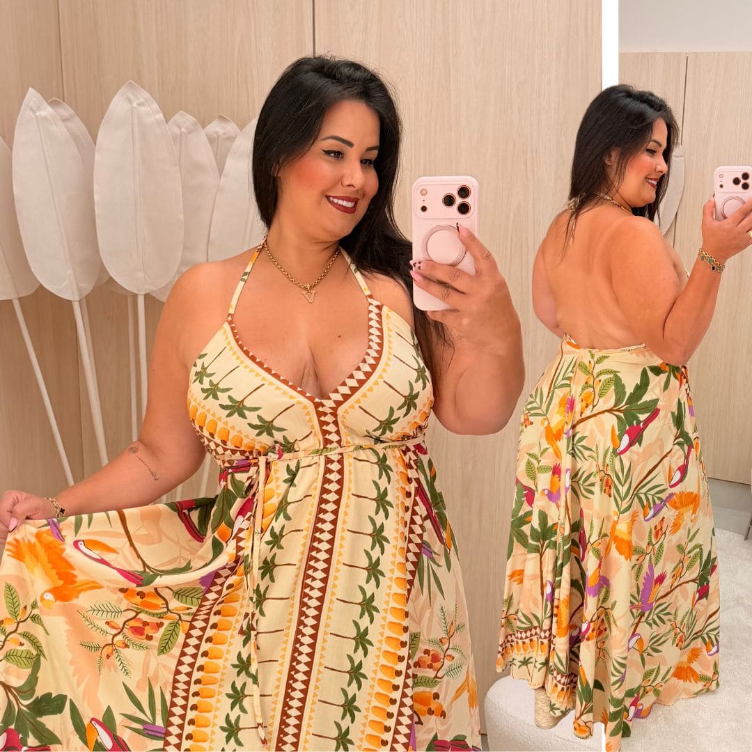 Vestido Lenço Adrieli Bege Verão Plus Size