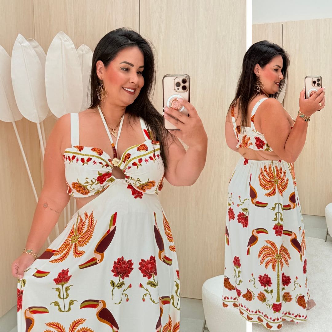 - Design: Modelo amarra no pescoço, sendo ajustado nas costas para tamanho menor