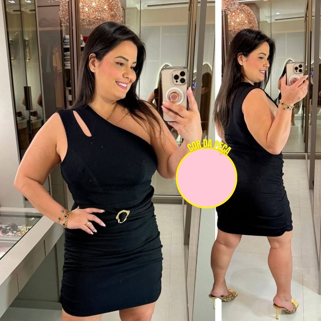 - Detalhe: Fivela dourada na cintura, trazendo sofisticação e efeito acinturado