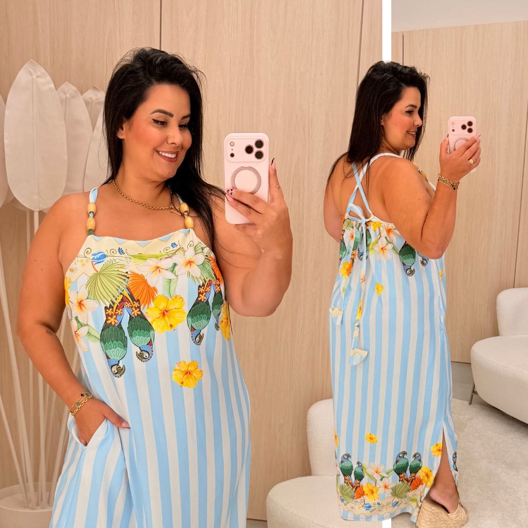 Vestido Santorini Azul BB Listra Plus Size