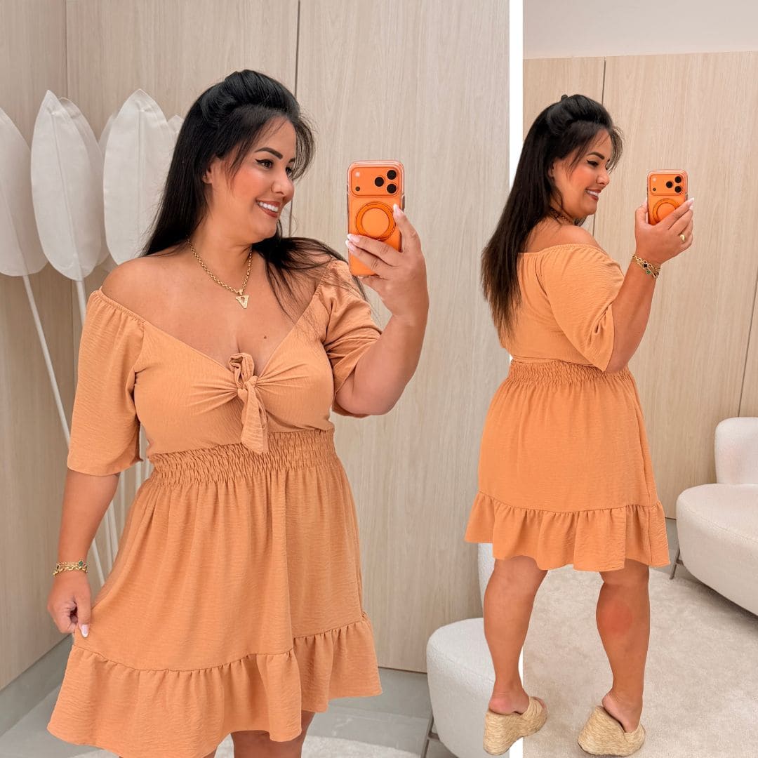 Vestido Susan Manga Marrom Claro Plus Size