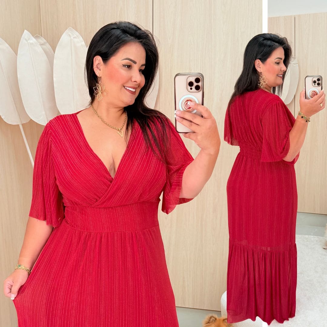 Vestido Tule Cruzado Vermelho Brilho Plus Size
